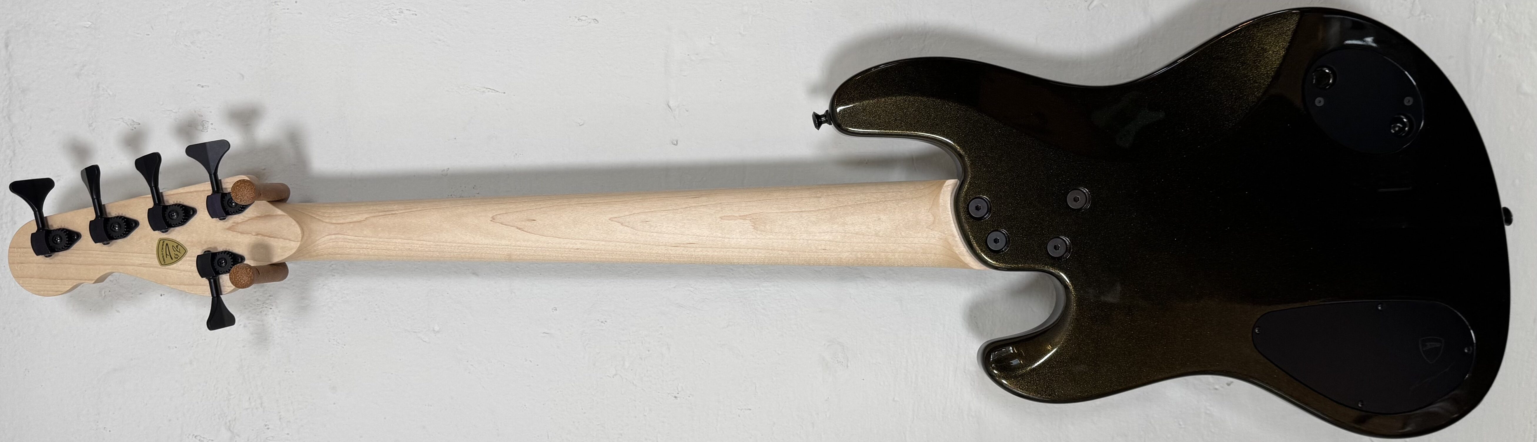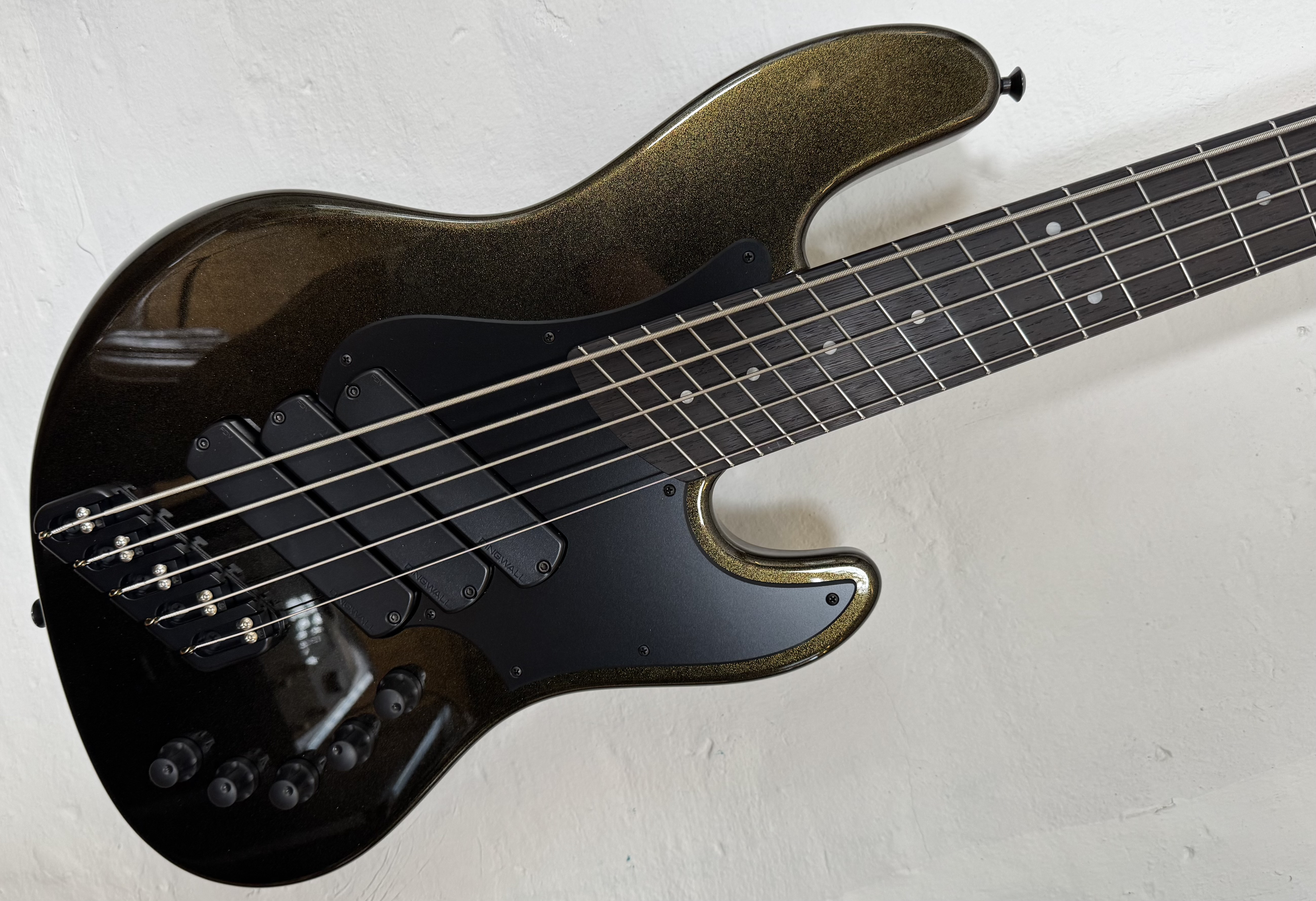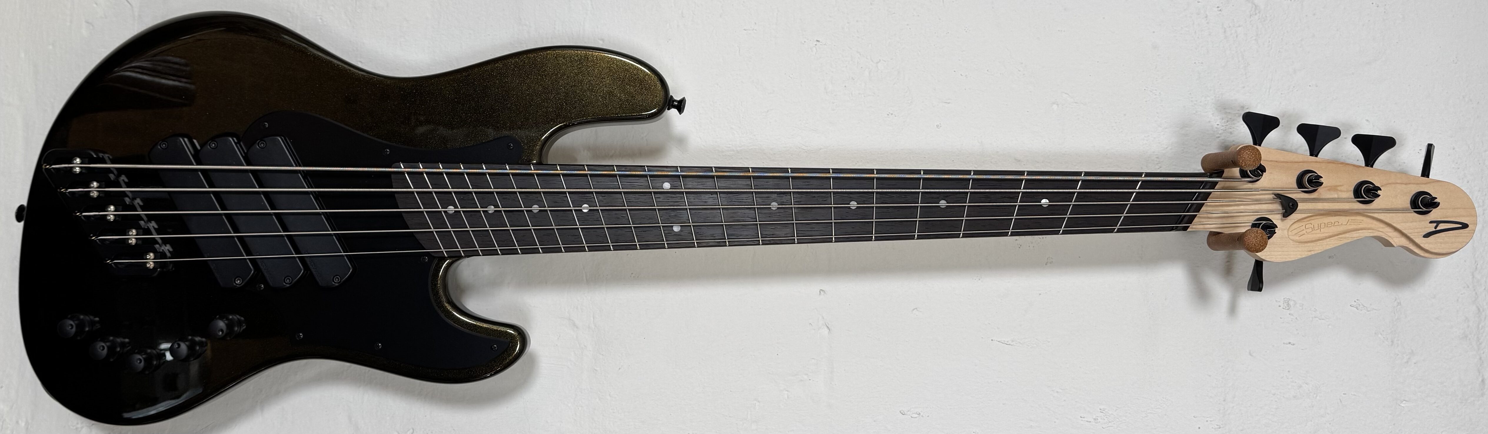 The Super J5 is Dingwall’s modern take on the classic J-bass idea – but as always, Sheldon and the team take it to another level. This one comes dressed in a stunning Black Gold metallic finish, shimmering with depth under the lights. It’s bold, refined, and just plain cool.