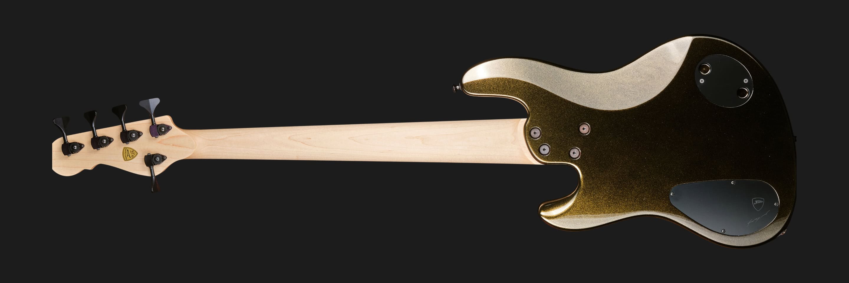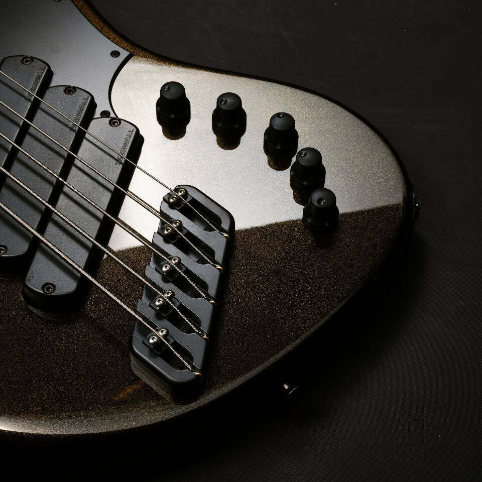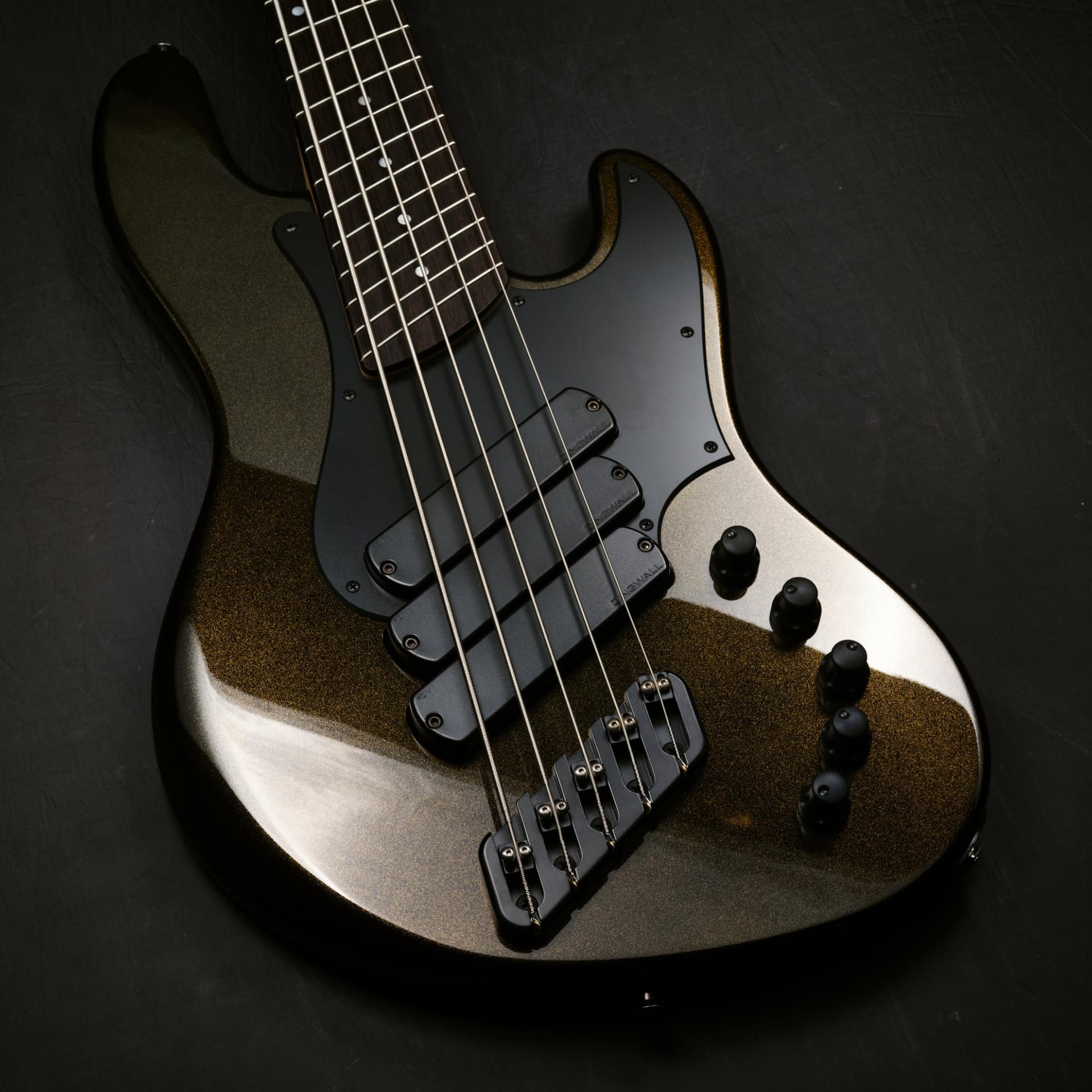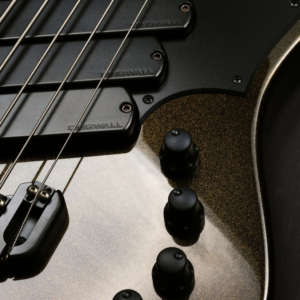 The Super J5 is Dingwall’s modern take on the classic J-bass idea – but as always, Sheldon and the team take it to another level. This one comes dressed in a stunning Black Gold metallic finish, shimmering with depth under the lights. It’s bold, refined, and just plain cool.