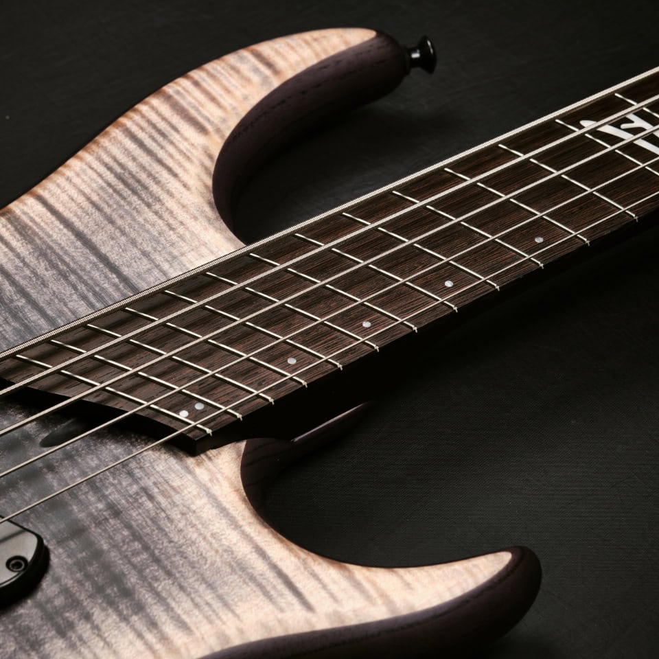 This is because they use the same scale length across the entire fretboard, when in reality, the B-string needs a longer scale length and the C-string should have a shorter scale length to sound its best. Dingwall’s fret design combats exactly this pitfall by varying the scale length across the fretboard.
