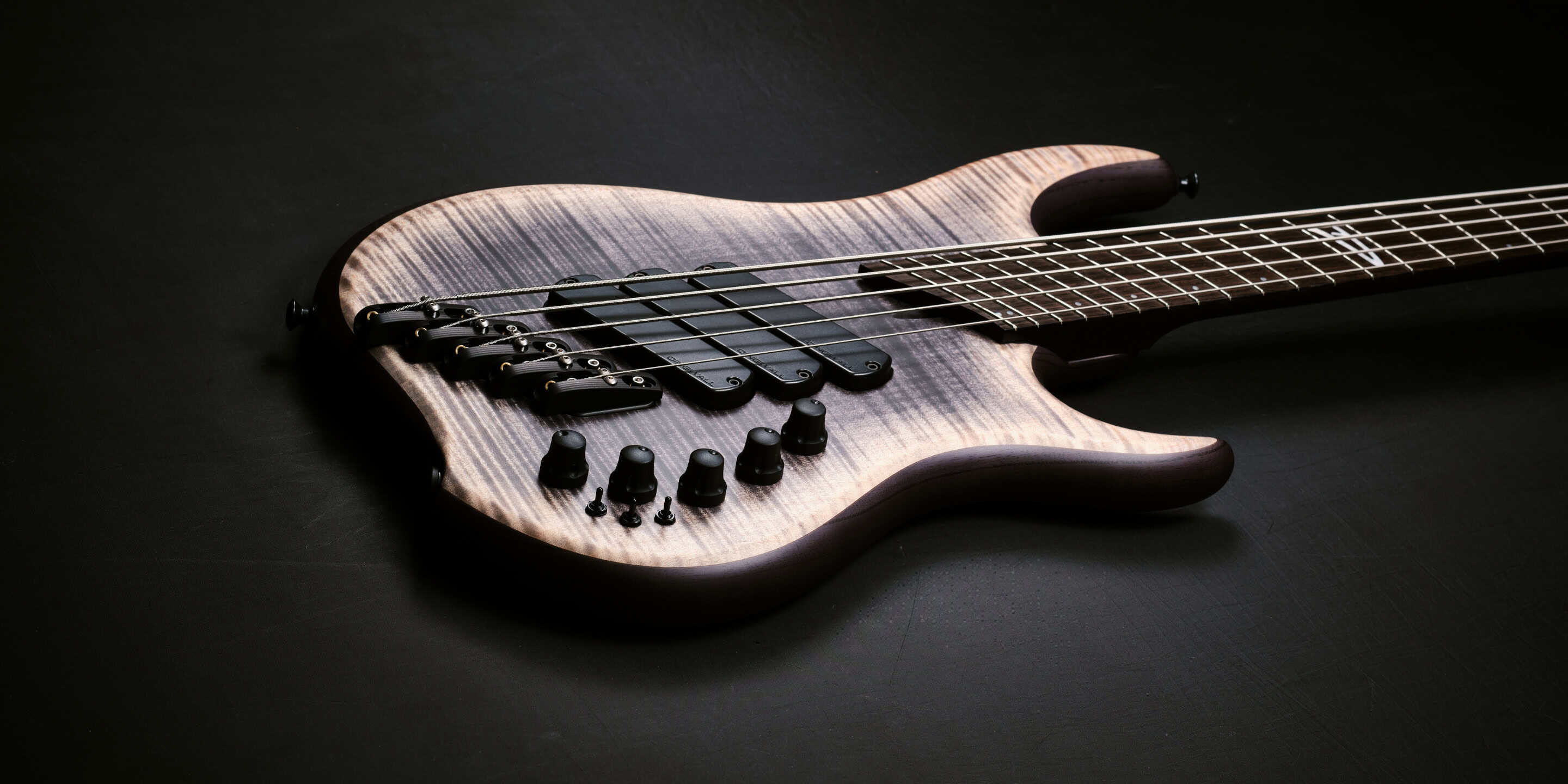 Now, Dingwall sort the Swamp Ash planks by weight and uses the most dense wood for the bass side and the light pieces for the treble side. This gives you a very high degree of consistency throughout the production, but it also increases the sustain, clarity and punch of the B and E-strings thanks to the high-density wood, and similarly, the low-density wood results in a nice and warm sound when playing the high strings.