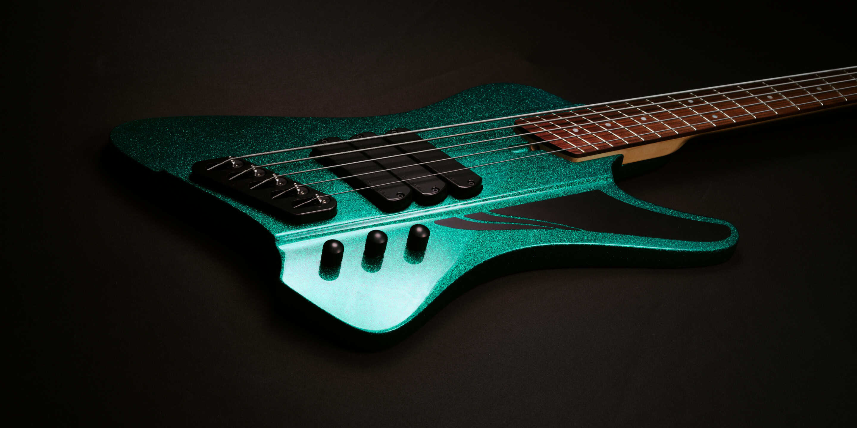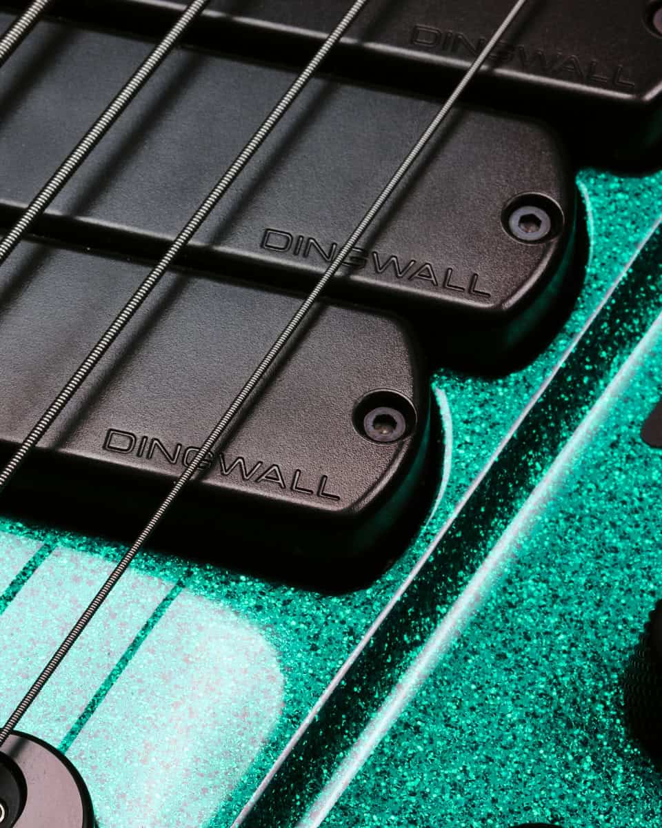 The bass is equipped with Dingwall FD3-N pickups featuring Neodymium magnets. These pickups have a high output, delivering a punchy and aggressive tone. The 4-position Quad-tone pickup selector offers a range of options, from deep, growling lows to crisp highs, allowing for versatility in playing styles. Even though it’s a passive bass with volume and tone control, it’s loud, tight, and powerful.”