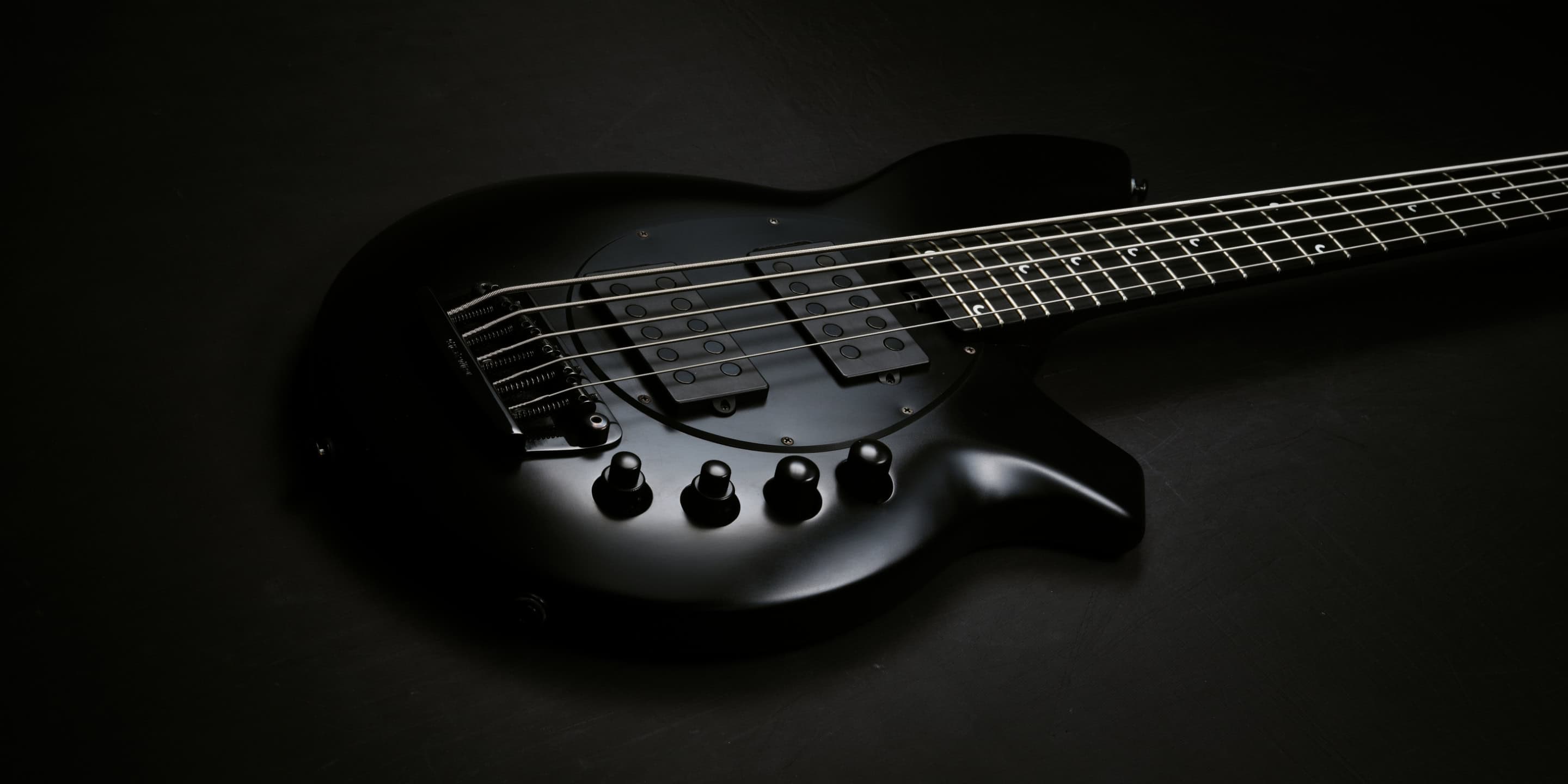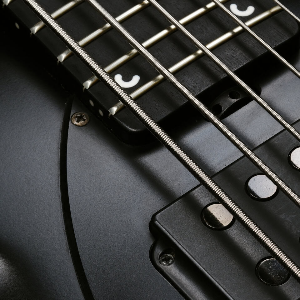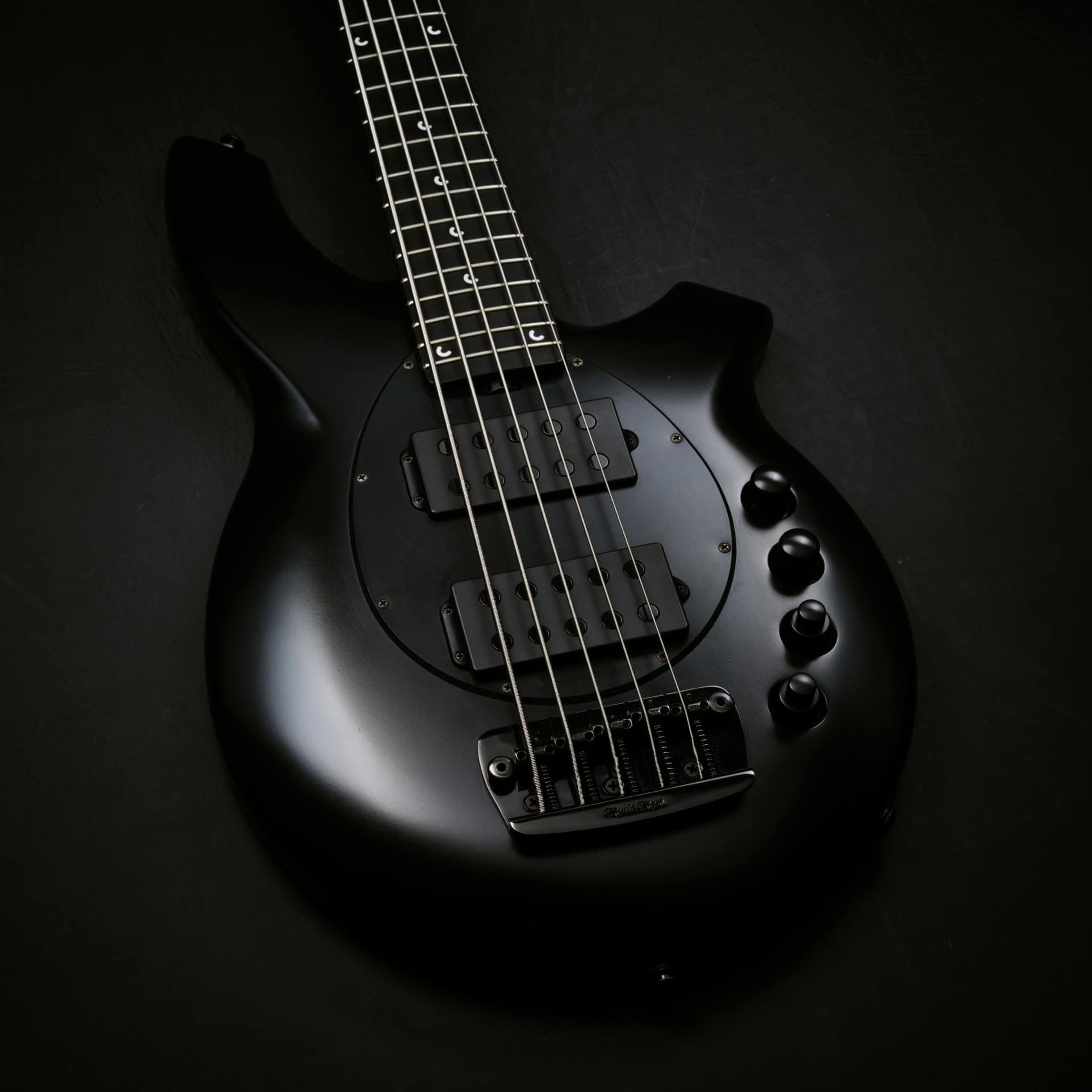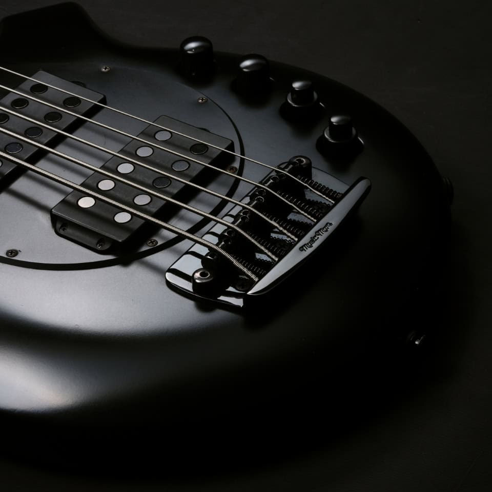 - Standard - Music Man® matte black hardened steel bridge plate with stainless steel saddles