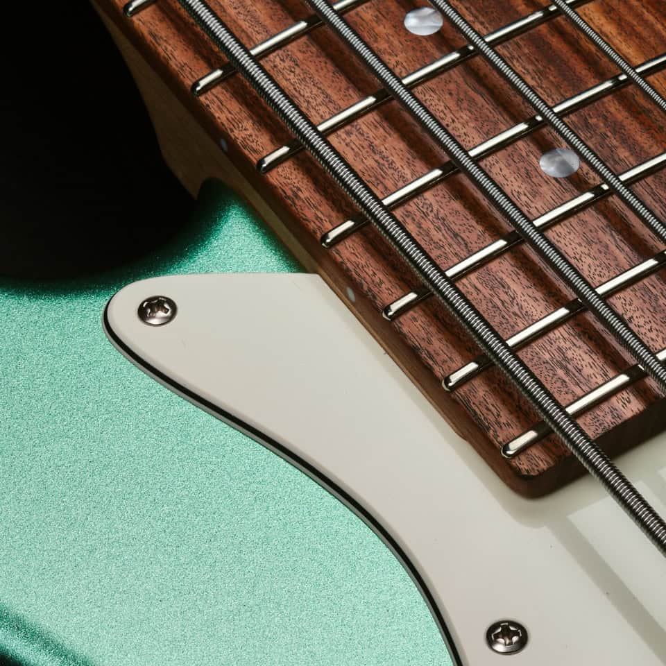 The alder body gives you a very balanced sound. The mid-range cuts through with great sustain and extra attack, which combined with the Morado fingerboard gives you a fast yet warm sound.