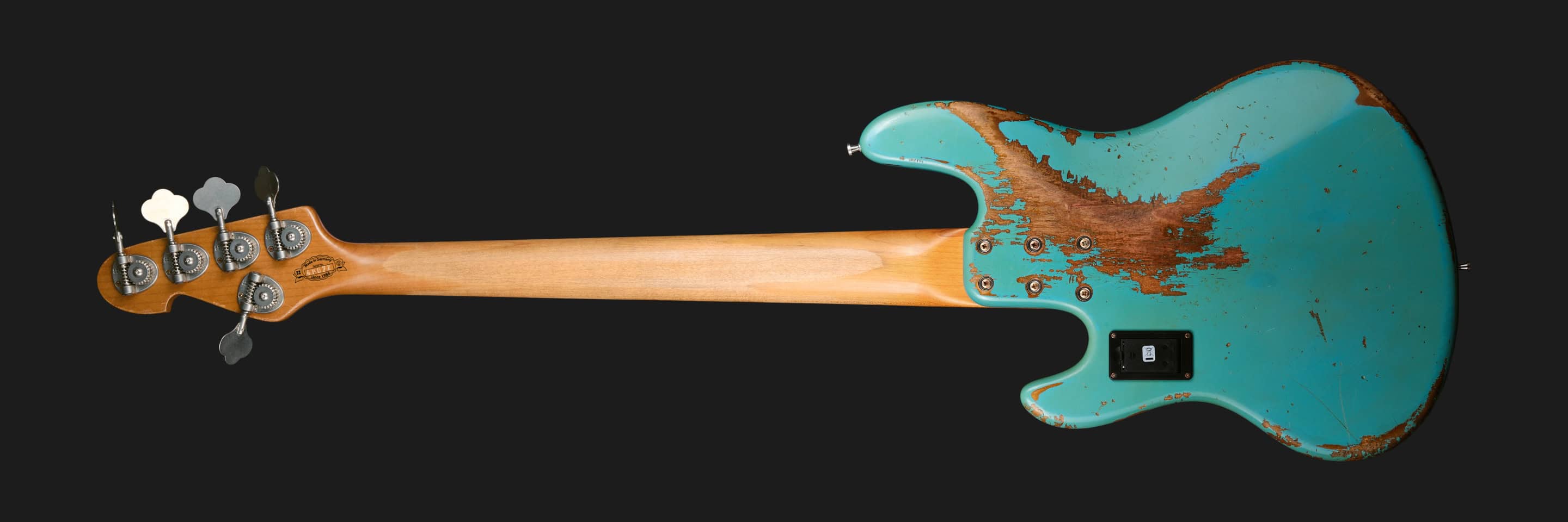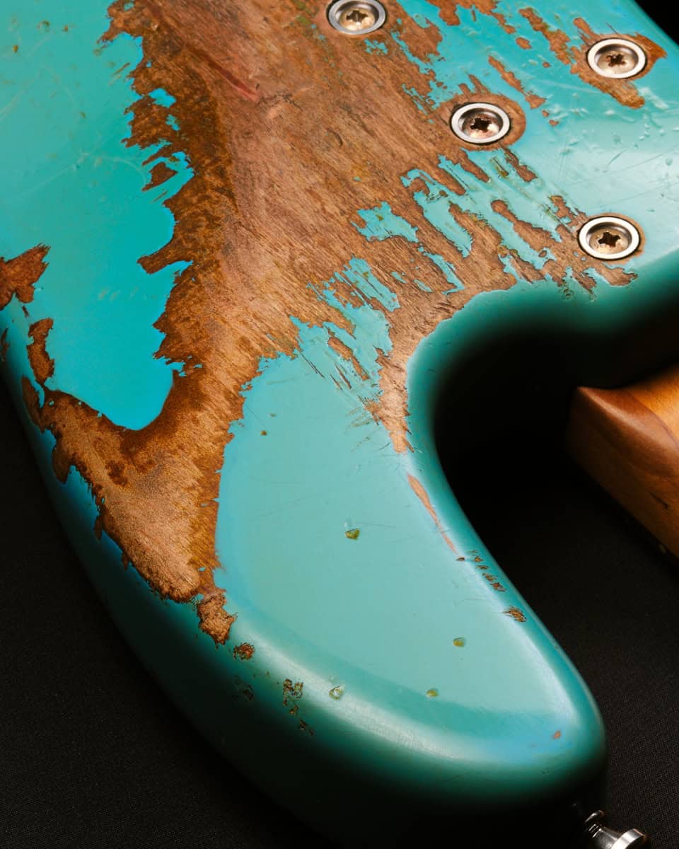A highly skilled artisan is responsible for the relic work on the Masterpiece basses, meticulously crafting each instrument’s unique wear and tear. This process is made on every bass with its own distinct history, detailing the origins of each scratch and dent.
