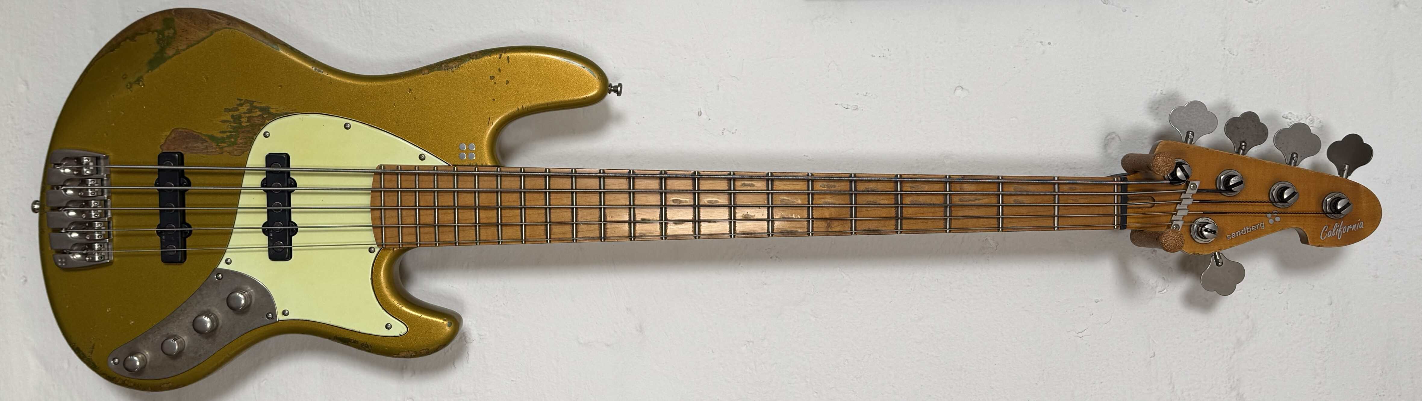 The TT5 Masterpiece is Sandberg’s top tier take on the classic J-style 5-string, built in Germany and aged to feel and sound like an instrument that’s already lived decades of music.